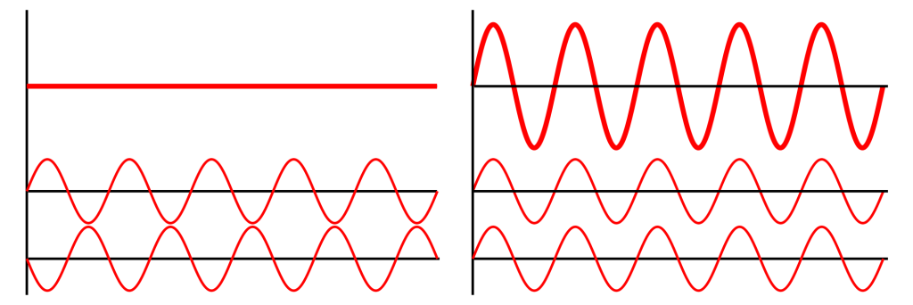 Here’s a little graphic that shows constructive (right) and destructive (left) interference between waves.