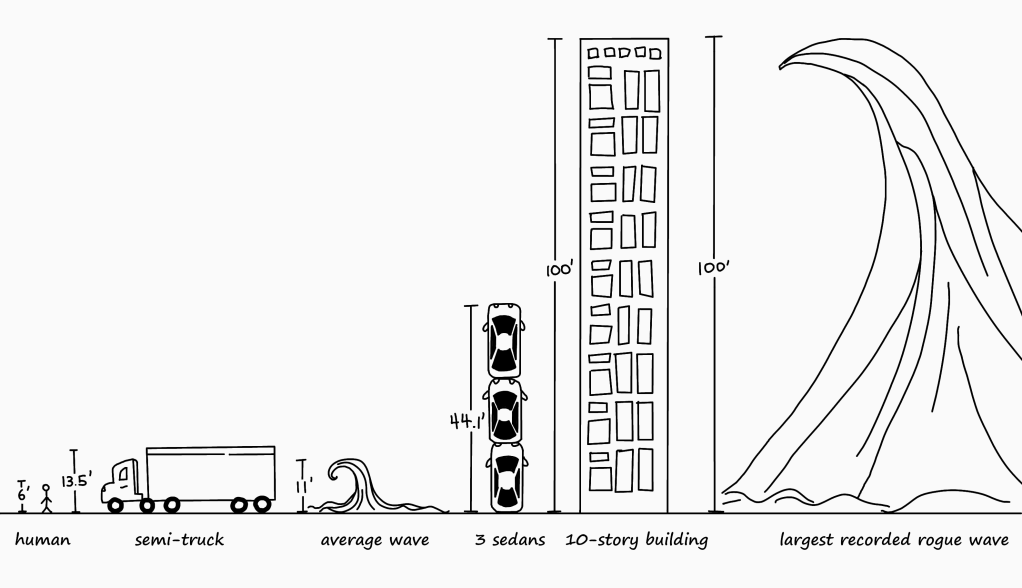 Bonus #0: rogue waves are large, but they’re nowhere nearly as massive as the one in that scene from Interstellar! I had to look this up since it’s been a while since I watched it.